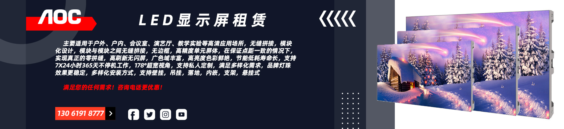 AOC P2全彩LED電子高清顯示小間距無縫拼接大屏幕視頻會議室內(nèi)戶外舞臺背景墻宣傳柔性透明廣告屏